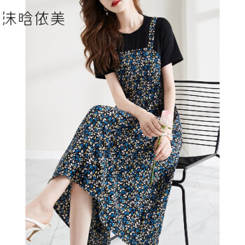 【浪漫碎花裙】夏季气质法式印花时尚女假两件连衣裙花色S