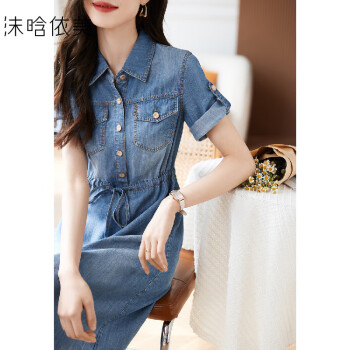 【抽绳牛仔衬衫连衣裙】2023夏季新款休闲时尚轻薄显瘦连衣裙牛仔蓝色M