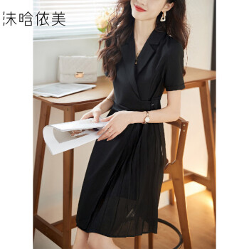 【极简风西装裙】夏季简约气质雪纺轻薄百搭女连衣裙黑色XL